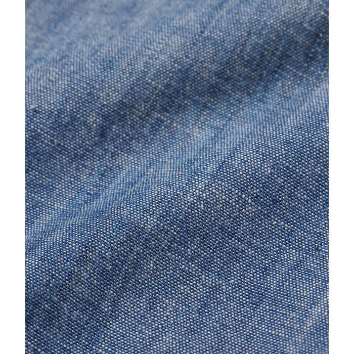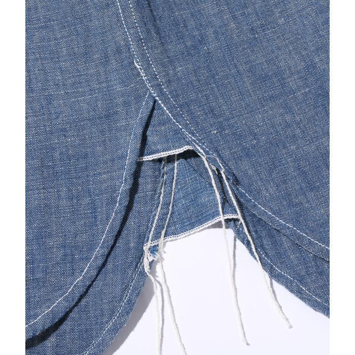 米海軍が採用したシャンブレーシャツは1930年代から現在まで支給が続く息の長いユーティリティーシャツである。このシャンブレーシャツは1950年代に採用したシャツのリプロダクション。時代の移り変わりと共に型や仕様に変化が見られたが、採用当初から1950年代に採用されたシャツは裾の両サイドはマチ付きが付き、台襟のある襟に前立てが付いた古き良き時代の仕様。この時代のシャンブレーの生地はテンションがあまく、洗濯を繰り返すことで縮みが生じて特有の風合いとなるのが特徴。
