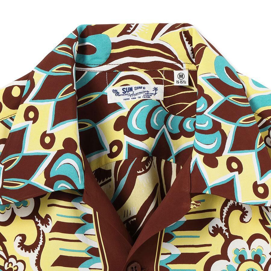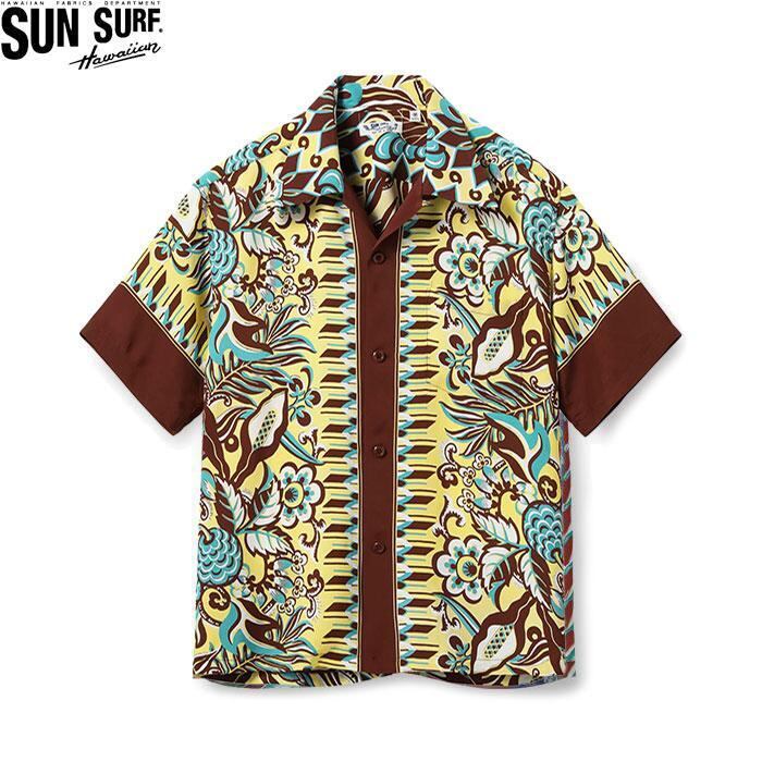 SUN SURF(サンサーフ)はアロハシャツの黄金期とされる1930年代から1950年代にかけて作られた、ヴィンテージのレーヨン製アロハシャツを中心に展開するブランド。創業から資料として収集し続けた数千着にも及ぶヴィンテージのアロハシャツを分析。鮮やかな発色と深みのある色合いを表現するため、抜染やオーバープリントといった当時の捺染手法を再現。各部のディテールにこだわり、数多くの名作を現代に甦らせている。