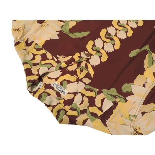 SUN SURF SS33876 S/S RAYON HAWAIIAN SHIRT NIGHT BLOOMING CEREUS BORDER BROWN サンサーフ 半袖 レーヨン ハワイアンシャツ ブラウン アロハシャツ