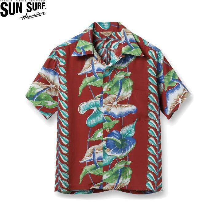 SUN SURF SS3886 S/S RAYON HAWAIIAN SHIRT ANTHURIUM WINE KAMEHAMEHA サンサーフ 半袖 レーヨン ハワイアンシャツ ワイン アロハシャツ 送料無料 | AMERICAN RUSH STORE