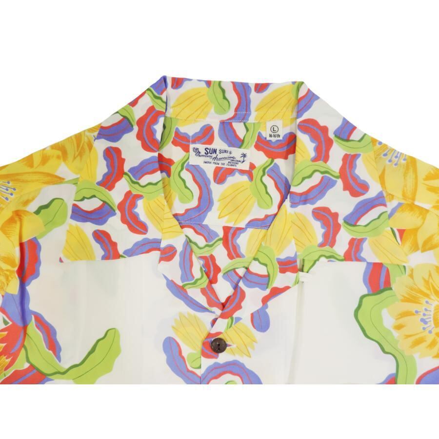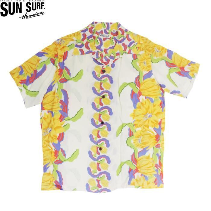 SUN SURF SS33876 S/S RAYON HAWAIIAN SHIRT NIGHT BLOOMING CEREUS BORDER OFF WHITE サンサーフ 半袖 レーヨン ハワイアンシャツ オフホワイト アロハシャツ | AMERICAN RUSH STORE