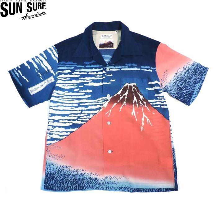 SUNSURF SS37917 S/S RAYON HAWAIIAN SHIRT HOKUSAI SPECIAL EDITION サンサーフ 半袖 レーヨン ハワイアンシャツ 北斎 スぺシャルエディション 凱風快晴 富嶽三十六景 アロハシャツ ネイビー 送料無料 | AMERICAN RUSH STORE