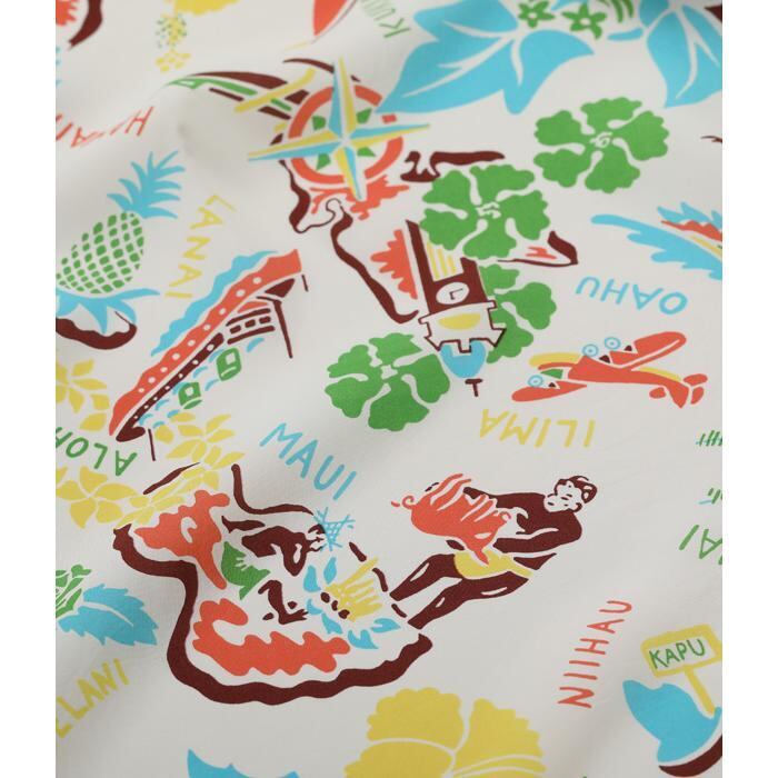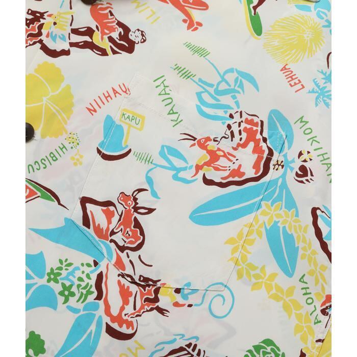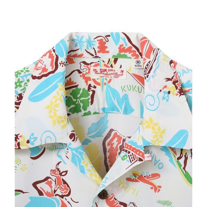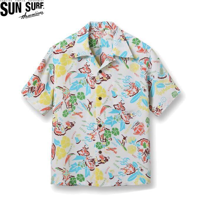 SUN SURF SS39026 S/S RAYON HAWAIIAN SHIRT SYMBOL OF THE ISLANDS OFF WHITE サンサーフ 半袖 レーヨン ハワイアンシャツ オフホワイト アロハシャツ 送料無料 | AMERICAN RUSH STORE