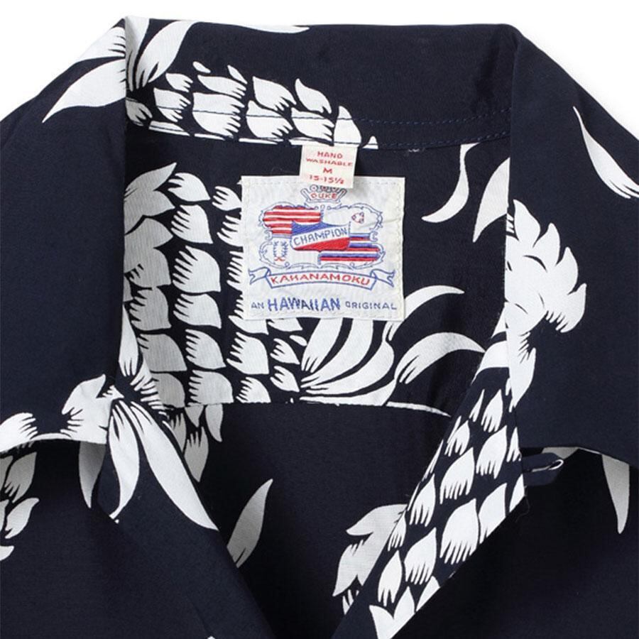 数あるヴィンテージアロハシャツの中でも非常に人気の高いパイナップルのデザイン。1953年の映画「地上より永遠に」の劇中で着用され、一躍人気を博したアロハシャツ史上最も有名なパイナップル柄。