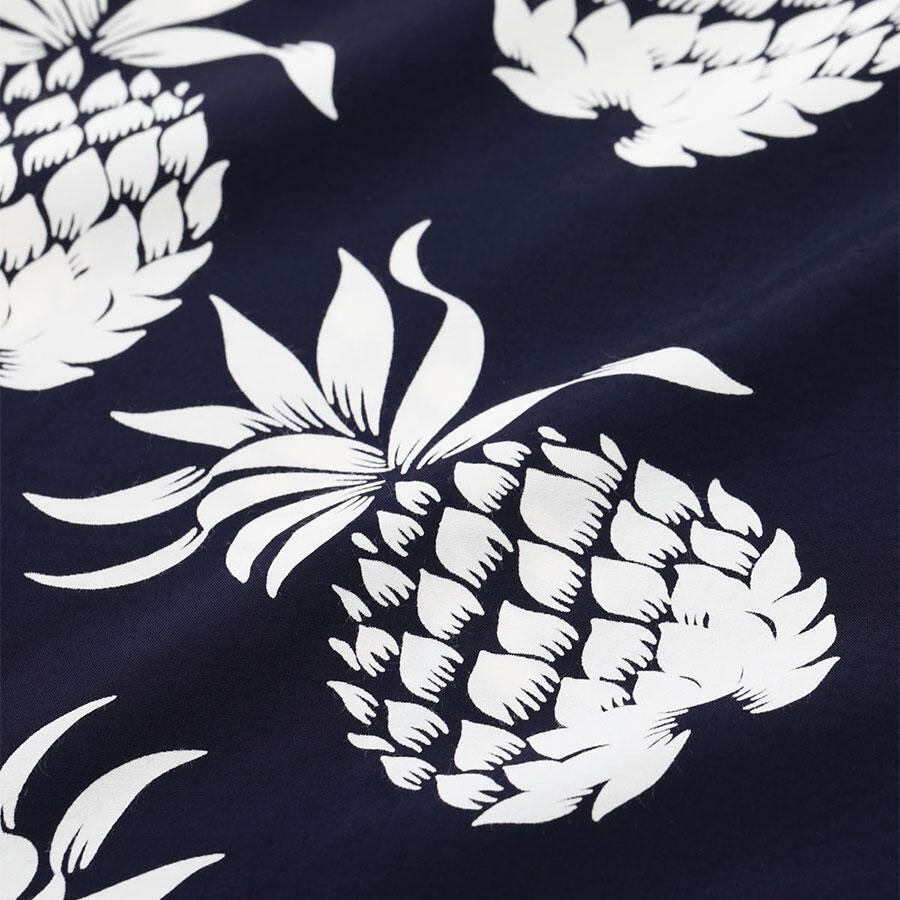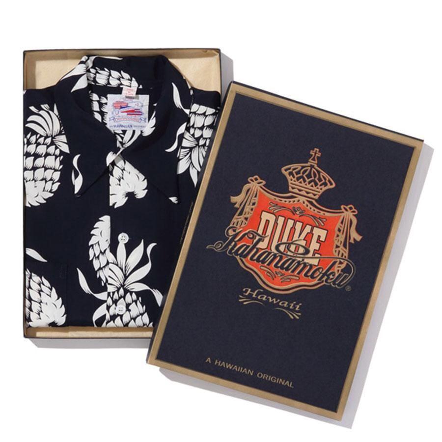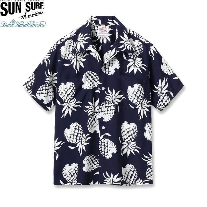 SUN SURF DK36201 S/S RAYON HAWAIIAN SHIRT DUKE KAHANAMOKU DUKE'S PINEAPPLE PATTERN NAVY サンサーフ デューク カハナモク 半袖 レーヨン ハワイアンシャツ ネイビー アロハシャツ 送料無料 | AMERICAN RUSH STORE