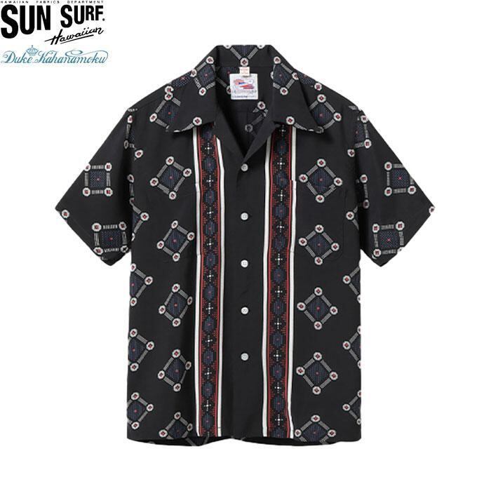 SUN SURF DK39446 S/S RAYON HAWAIIAN SHIRT DUKE KAHANAMOKU WESTCOAST PATTERN BLACK サンサーフ デューク カハナモク 半袖 レーヨン ハワイアンシャツ ブラック アロハシャツ 送料無料 | AMERICAN RUSH STORE