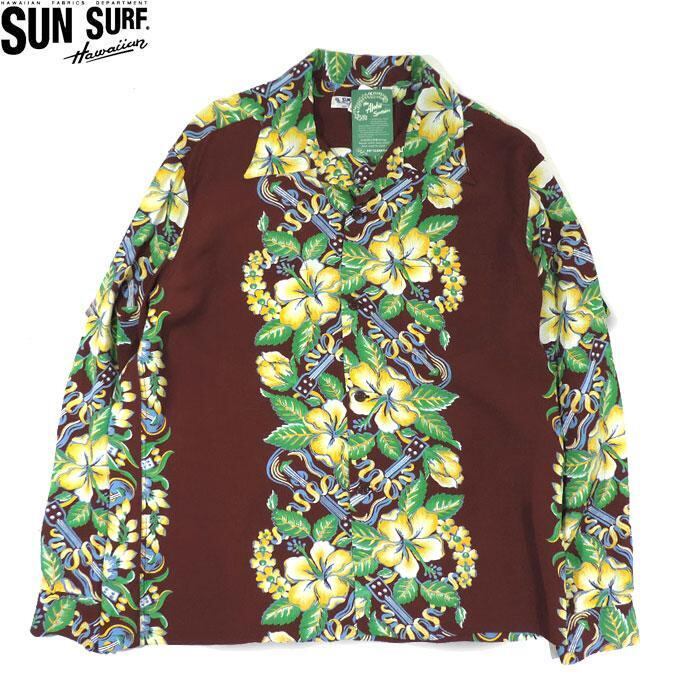 SUN SURF SS29202 L/S RAYON HAWAIIAN SHIRT BLESSING GIFT FROM HAWAII BROWN サンサーフ 長袖 レーヨン ハワイアンシャツ ブラウン アロハシャツ 送料無料
