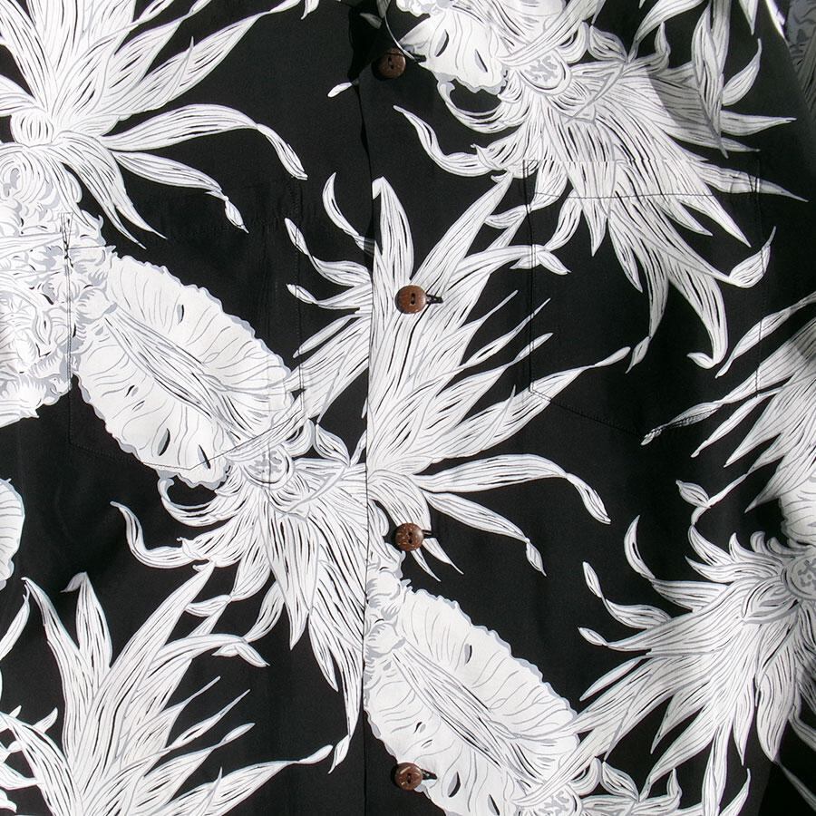 アロハシャツのデザインの中でも定番的な人気を誇るパイナップル。中でも最も優れたデザインといわれコレクターからの人気が高いアイランド・パイナップル。手がけたのはアロハシャツ史に名を残すテキスタイルデザイナー、ジョン・メイグス。
