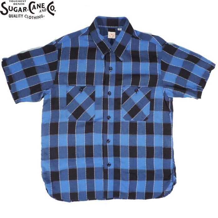 SUGARCANE SC37323 DOBBY PANE CHECK S/S WORK SHIRT NAVY シュガーケーン ドビー ペイン チェック 半袖 ワークシャツ シャツ ネイビー | AMERICAN RUSH STORE