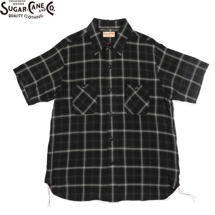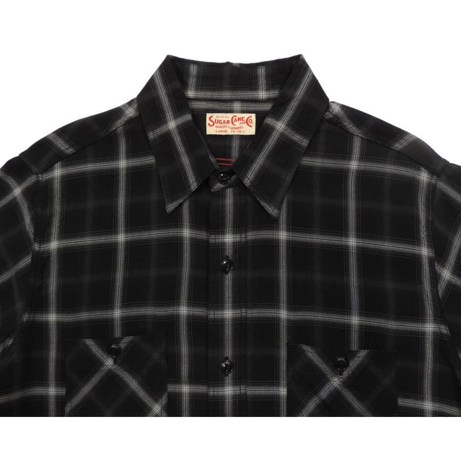 SUGARCANE SC39116 RAYON TWILL CHECK S/S WORK SHIRT BLACK シュガーケーン レーヨン ツイル チェック 半袖 ワークシャツ ブラック 送料無料 | AMERICAN RUSH STORE