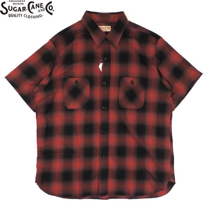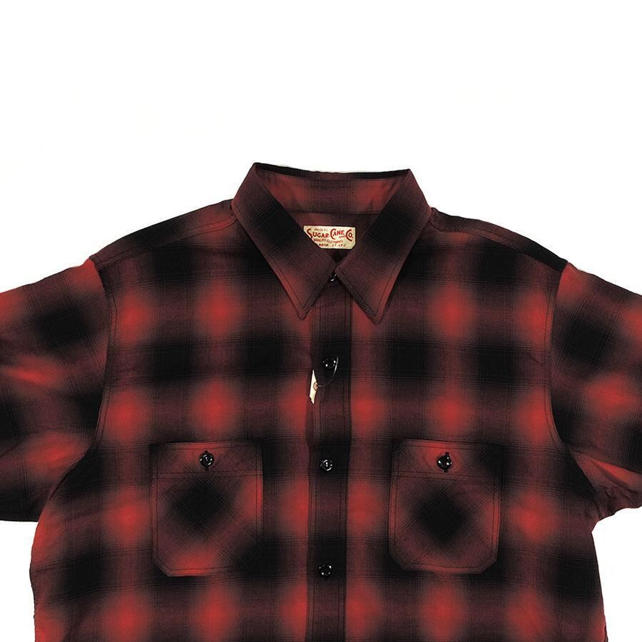 SUGARCANE SC39293 COTTON OMBRE CHECK S/S WORK SHIRT RED シュガーケーン コットン オンブレー チェック ワークシャツ 半袖 レッド 送料無料 | AMERICAN RUSH STORE