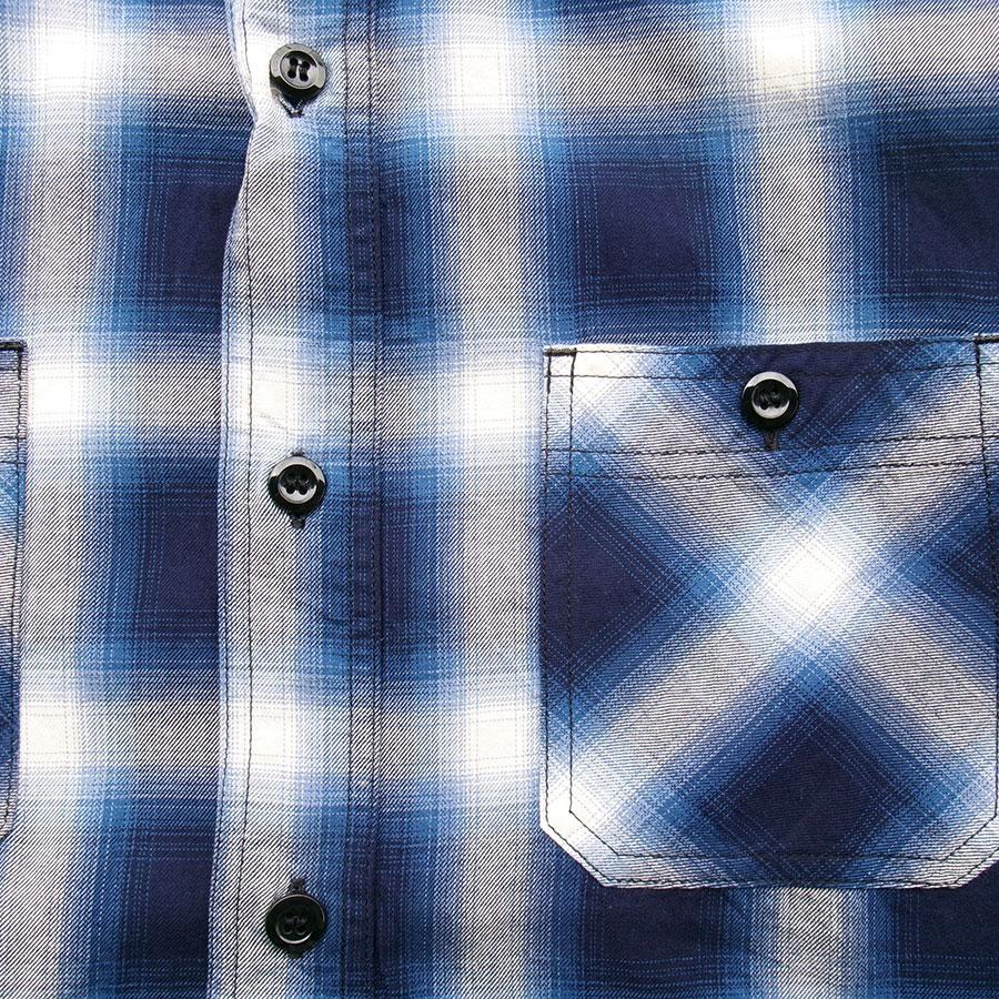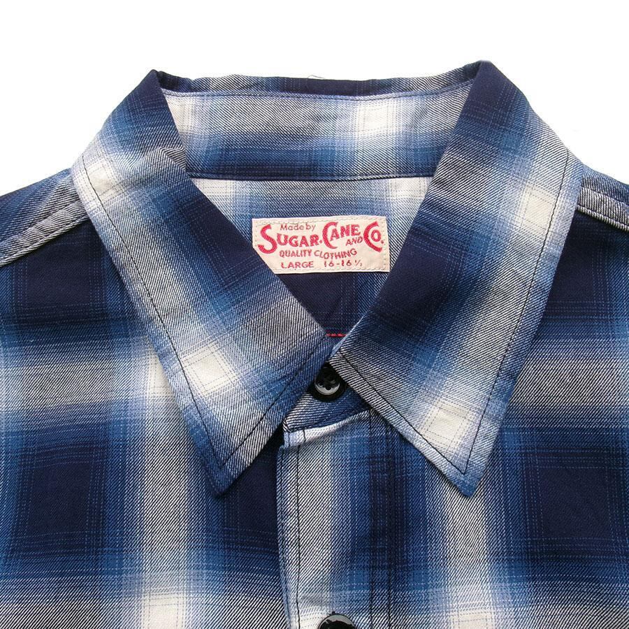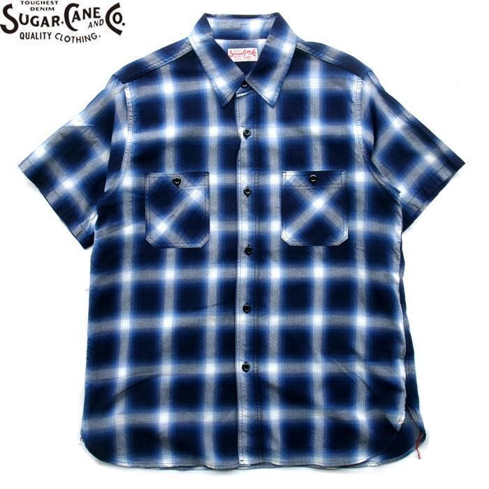 SUGARCANE SC39519 COTTON OMBRE CHECK S/S WORK SHIRT NAVY シュガーケーン コットン オンブレー チェック ワークシャツ 半袖 ネイビー 送料無料 | AMERICAN RUSH STORE