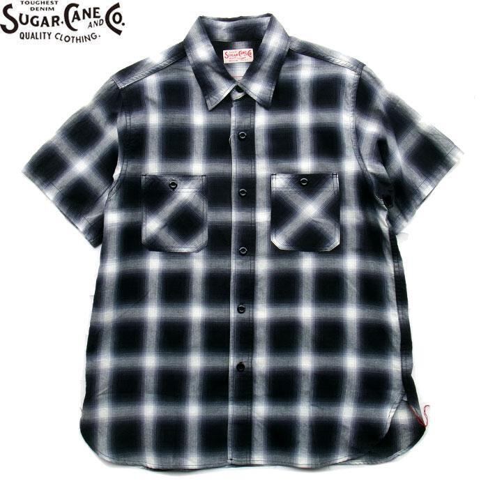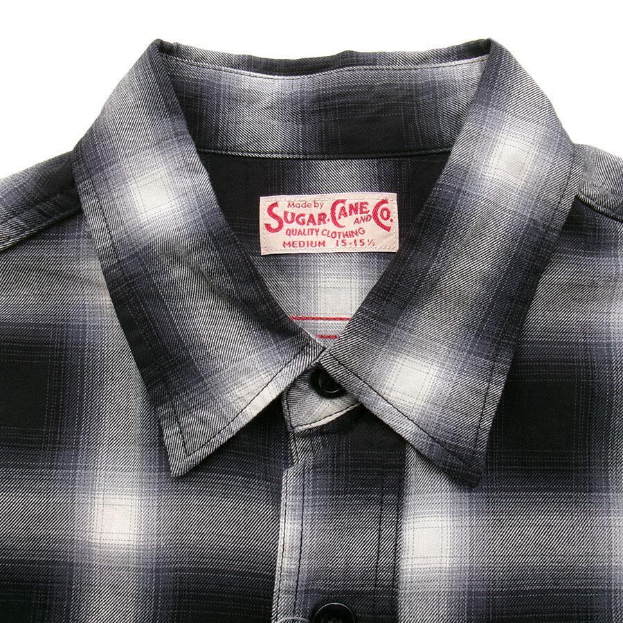 SUGARCANE SC39519 COTTON OMBRE CHECK S/S WORK SHIRT BLACK シュガーケーン コットン オンブレー チェック ワークシャツ 半袖 ブラック 送料無料 | AMERICAN RUSH STORE