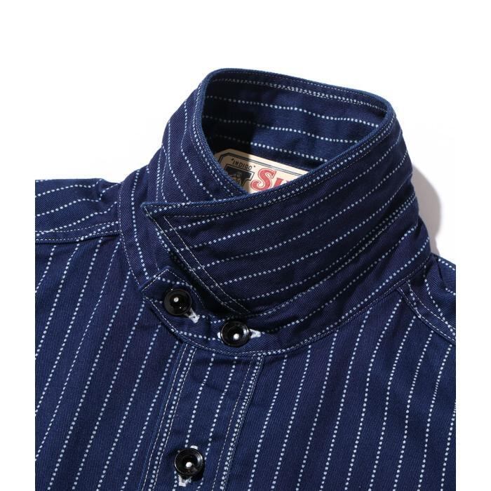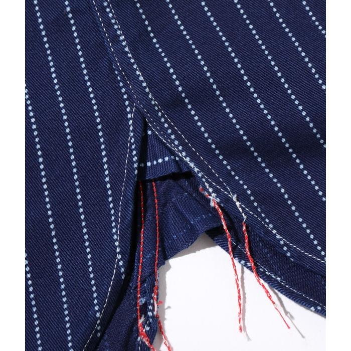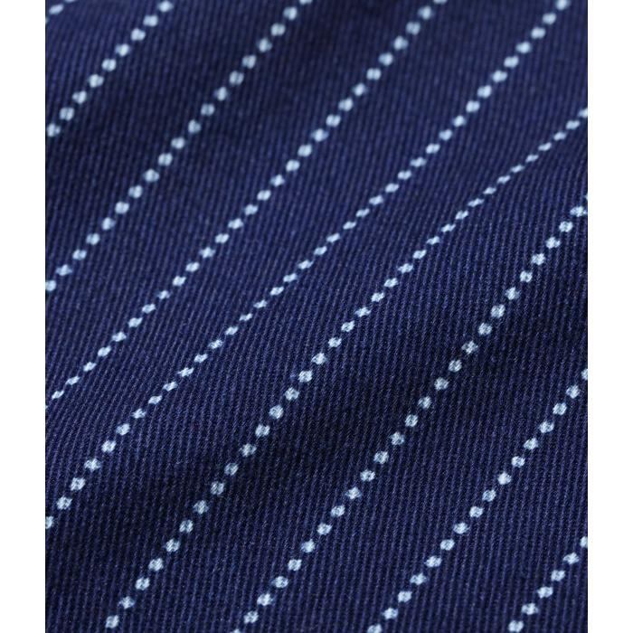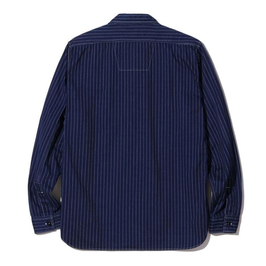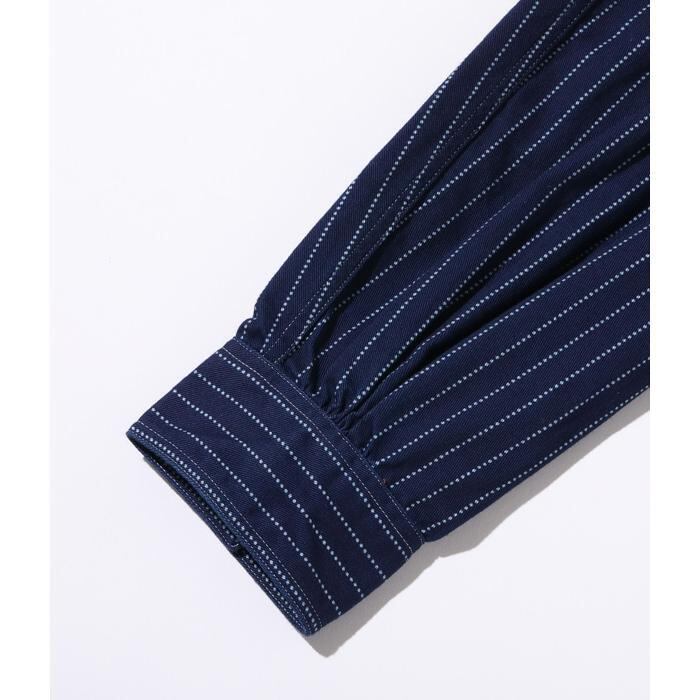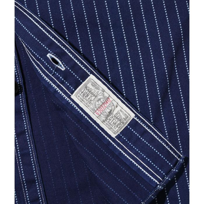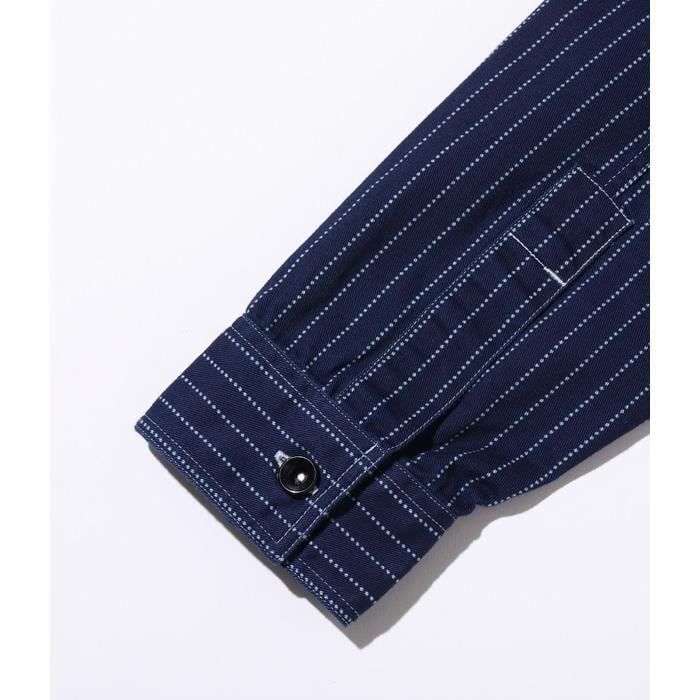 インディゴ染めした8.5オンスの生地をドットストライプ柄に抜染した「ウォバッシュストライプ」のワークシャツ。ワークウエア黎明期のヴィンテージをベースとしており、ディテールにドレスシャツの名残がみられる。同じ生地を使用したショートスリーブモデルも展開。