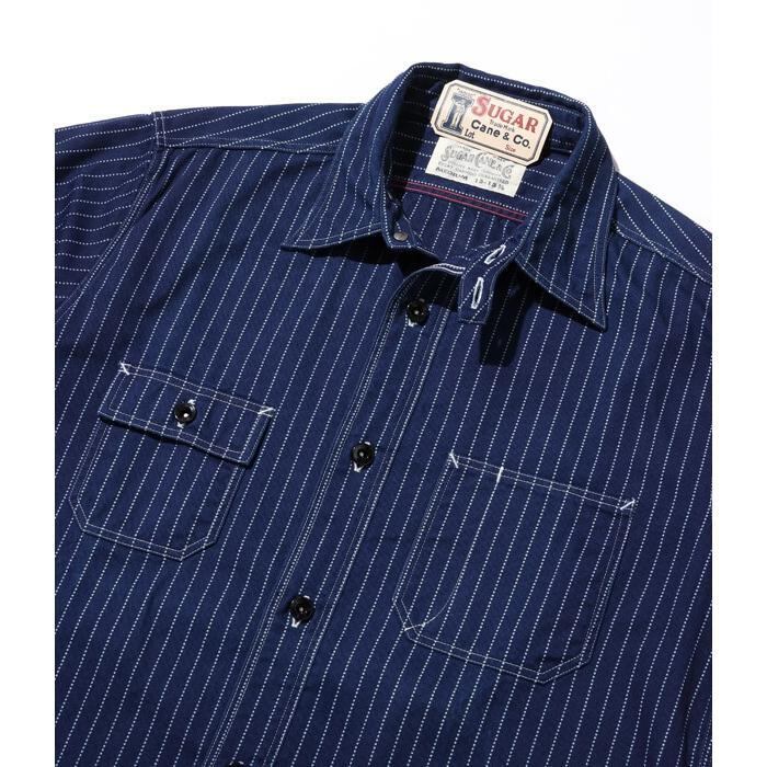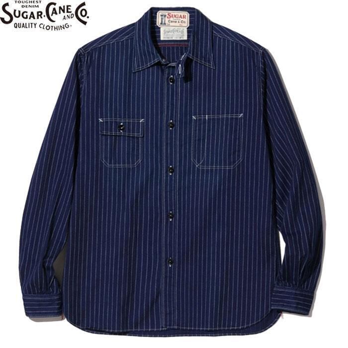SUGARCANE SC25551A WABASH STRIPE L/S WORK SHIRT 8.5oz NAVY シュガーケーン ウォバッシュストライプ ワーク シャツ ネイビー 長袖 送料無料 | AMERICAN RUSH STORE