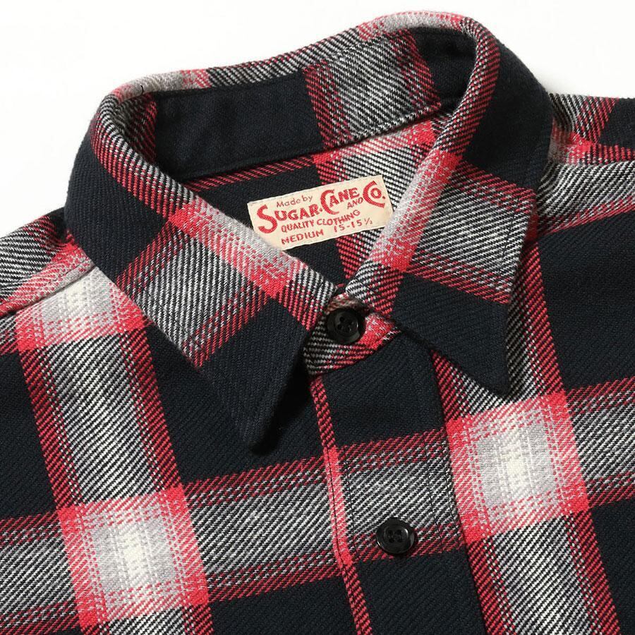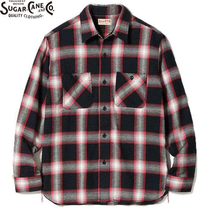 SUGARCANE SC29360 TWILL CHECK WORK SHIRT BLACK シュガーケーン ツイル チェック ワーク シャツ ネルシャツ 長袖 メンズ レディース ブラック/レッド 送料無料