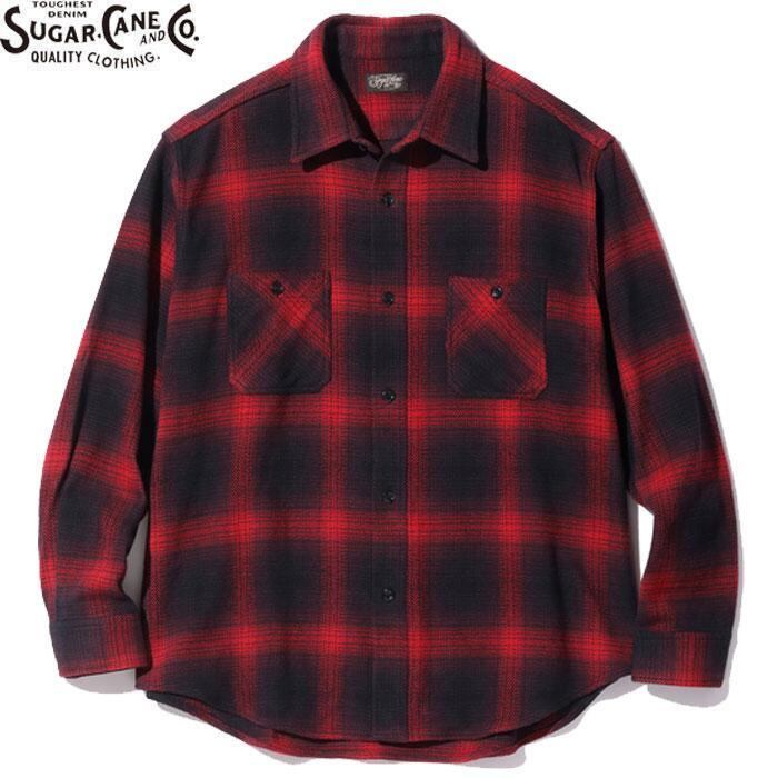 SUGARCANE SC29176 OMBRE PLAID HEAVY FLANNEL WORK SHIRT RED シュガーケーン ヘビー フランネル ワーク シャツ 長袖 メンズ レディース ブラック/レッド 送料無料