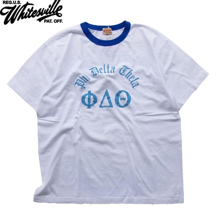 WHITESVILLE WV79522 Phi Delta Theta RINGER T-SHIRT OFF WHITE/BLUE ホワイツビル リンガー Tシャツ 半袖 カレッジ メンズ レディース オフホワイト/ブルー | AMERICAN RUSH STORE