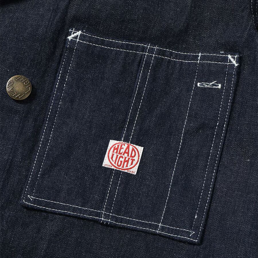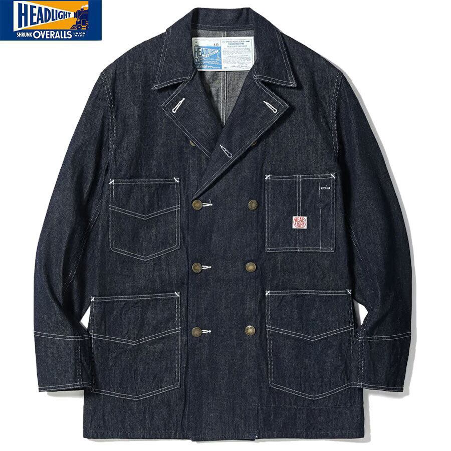 HEADLIGHT HD15844 9.5oz. SPECIAL WEAVE DENIM DOUBLE BREASTED COAT 421 NAVY A ヘッドライト ダブルブレスト ワーク コート カバーオール ネイビー 送料無料
