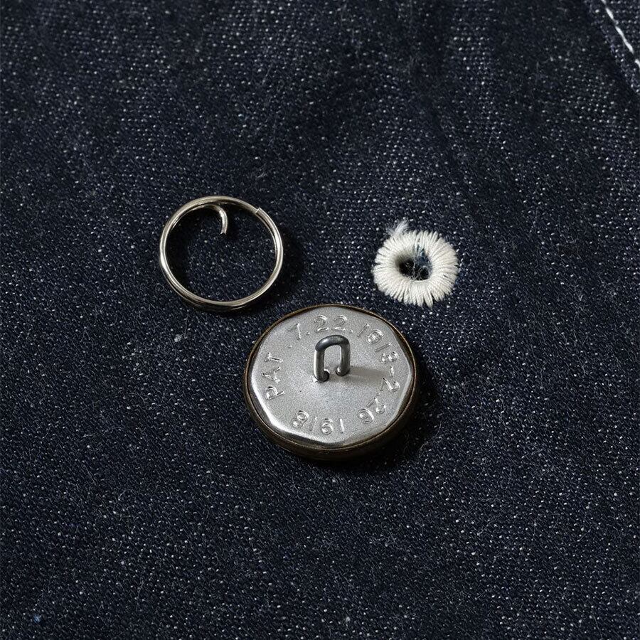 今から丁度100年前、1925年のヘッドライトの広告に掲載されていたダブルブレストコートを復刻。後の年代の資料には見かけることもなく、現存する実物はほぼ皆無であろうレアな逸品。深い打ち合いで10個ものチェンジボタンが付いたダブルブレストは、石炭や泥、雪などの侵入を防ぐ。袖口は大きな「ガントレットカフ」で、2つのボタン穴に対し、3つのタックボタンが付くレイルローダー仕様。着丈が通常のコートよりも長めとなっており、大型の内ポケットが低い位置に取り付けられている。
