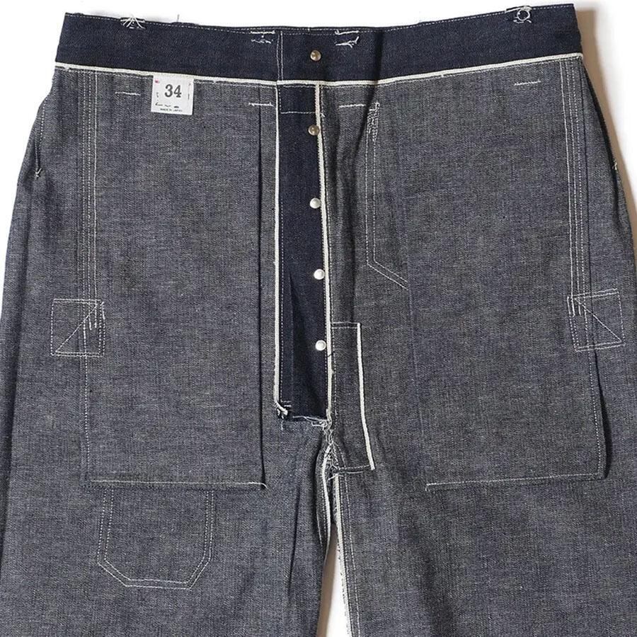1910年代のユニークなデニムのワークパンツ。このメーカーの衣服のデザイン、構造に対する考え方は非常にユニークです。おそらくテントやギアなど、衣服以外のものを本業として作っていたのだと思います。ヒップとフロントのユニークなポケット、オーバーサイズのバックポケット、巻きデニムの脚がとても気に入っています。