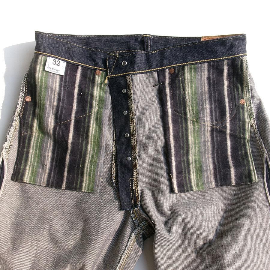 6.7番×6.7番 茶綿混ピンクセルヴィッチWWIIデニム、鉄製銅メッキリベット、ベジタブルタンニングディアスキンラベル、オリジナルフランネル袋ポケット、ペンキプリントステッチ等々30年積み上げてきた技術を駆使して再現された至高の大戦モデルです。