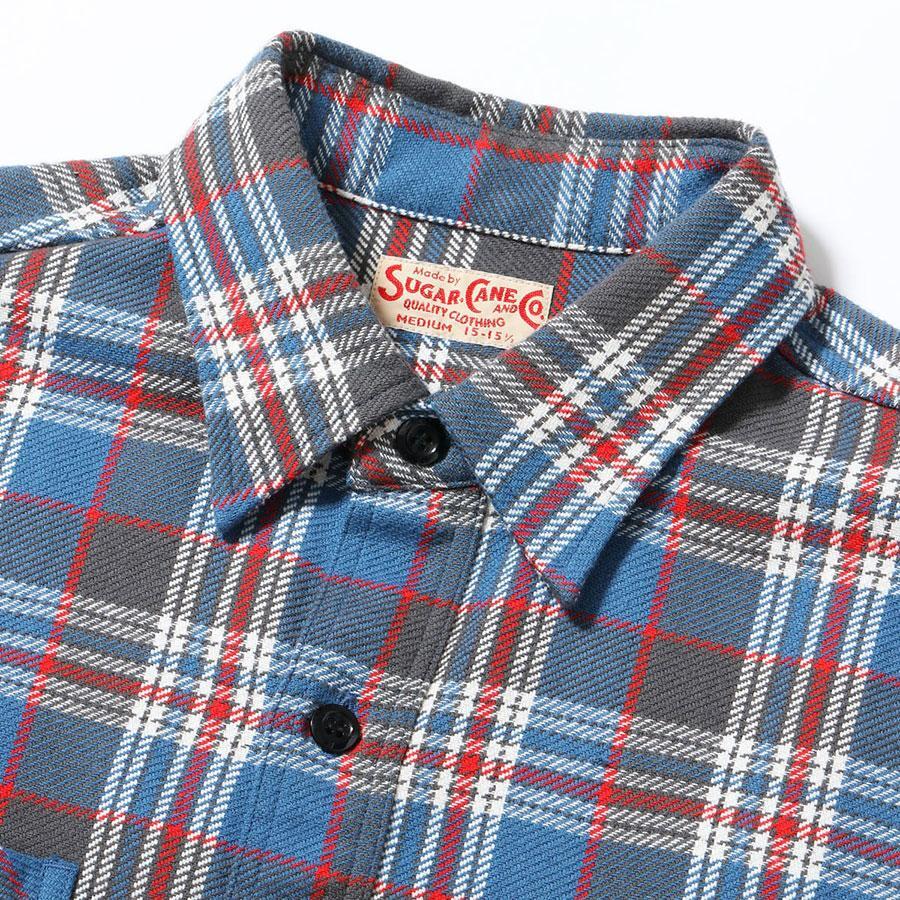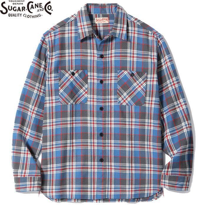 SUGAR CANE SC29564 TWILL CHECK WORK SHIRT BLUE シュガーケーン ツイル チェック ワーク シャツ 長袖 メンズ レディース ブルー 送料無料