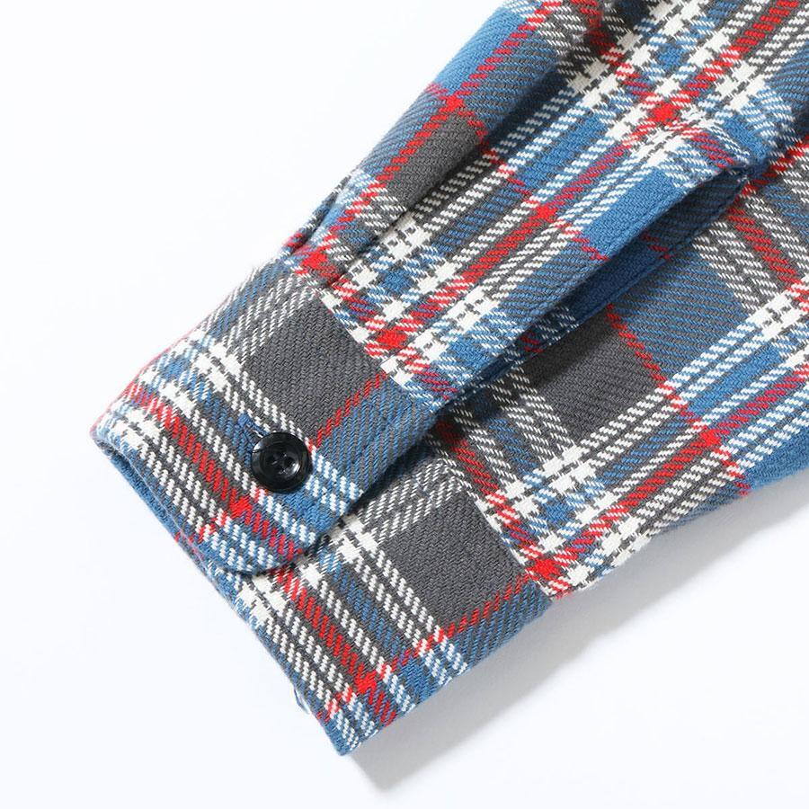 シュガーケーンが資料として保管するヴィンテージをベースに、2本針巻き縫いの縫製や各部の仕様など、1950〜60年代のディテールを再現した王道的なチェックシャツ。1960年代のBRENT製ワークシャツから柄を起こした経糸4色×緯糸4色の当時のアメリカらしい配色のチェック。ブルー、ブラウン、グリーンの3カラーで、配色にはBIGYANKやBIGMACのシャツもベースにしている。