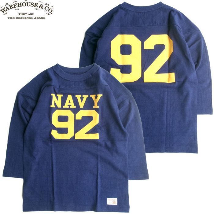 WAREHOUSE &CO. 4063 F/B T-SHIRTS NAVY92 NAVY ウェアハウス カンパニー メンズ 七分袖 フットボールTシャツ メンズ レディース ネイビー | AMERICAN RUSH STORE