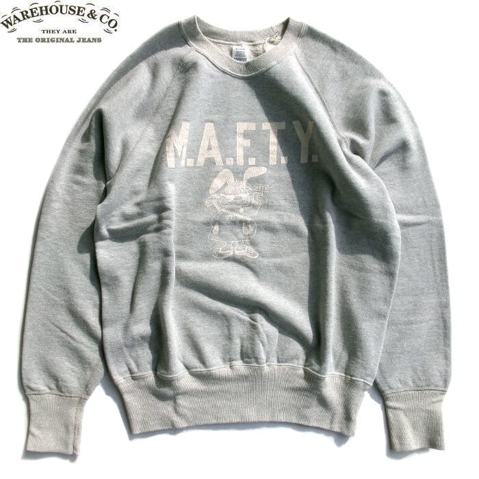 WAREHOUSE &CO. 461 CREW NECK SWEAT SHIRTS M.A.F.T.Y. H.GREY ウェアハウス カンパニー メンズ クルーネック スエット ラグラン トレーナー グレー 送料無料