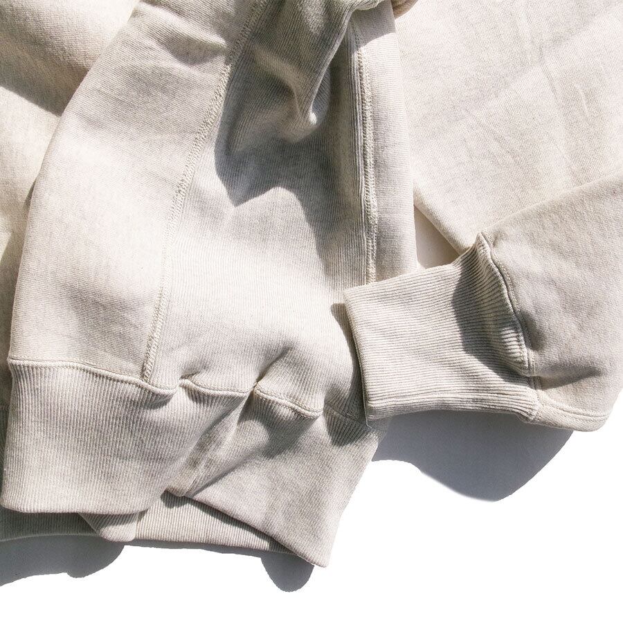 このスウェットシャツを手に取ってみると、まずは、その「重さ」に驚くことでしょう。1960年代のRWタイプを再現するために試行錯誤を繰り返した新開発のリバーススタイル専用吊り裏起毛スウェットシャツ。