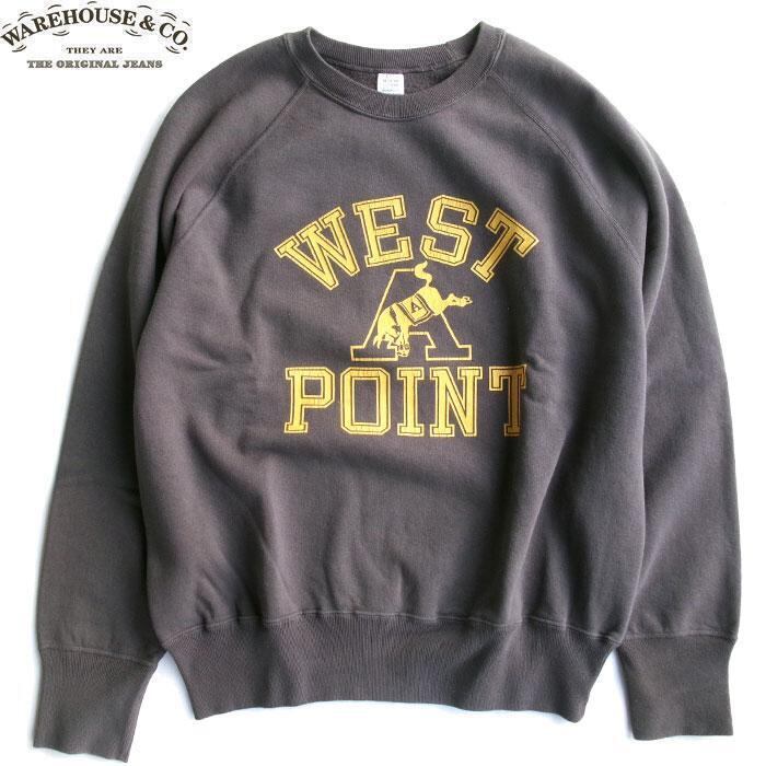 WAREHOUSE &CO. 461 CREW NECK SWEAT SHIRTS WEST PONIT ウェアハウス カンパニー メンズ クルーネック スエット ラグラン トレーナー チャコール 送料無料