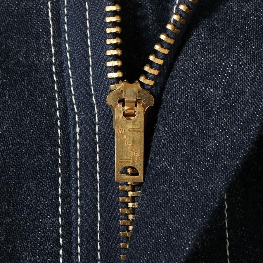 1940年代後半〜1950年代に生産された一見シンプルなブルーデニムダンガリーズ。フロントのトップがスナップボタン、フライがファスナー仕様で、コの字ストッパーのWALDESが採用された着脱が非常に容易なモデル。